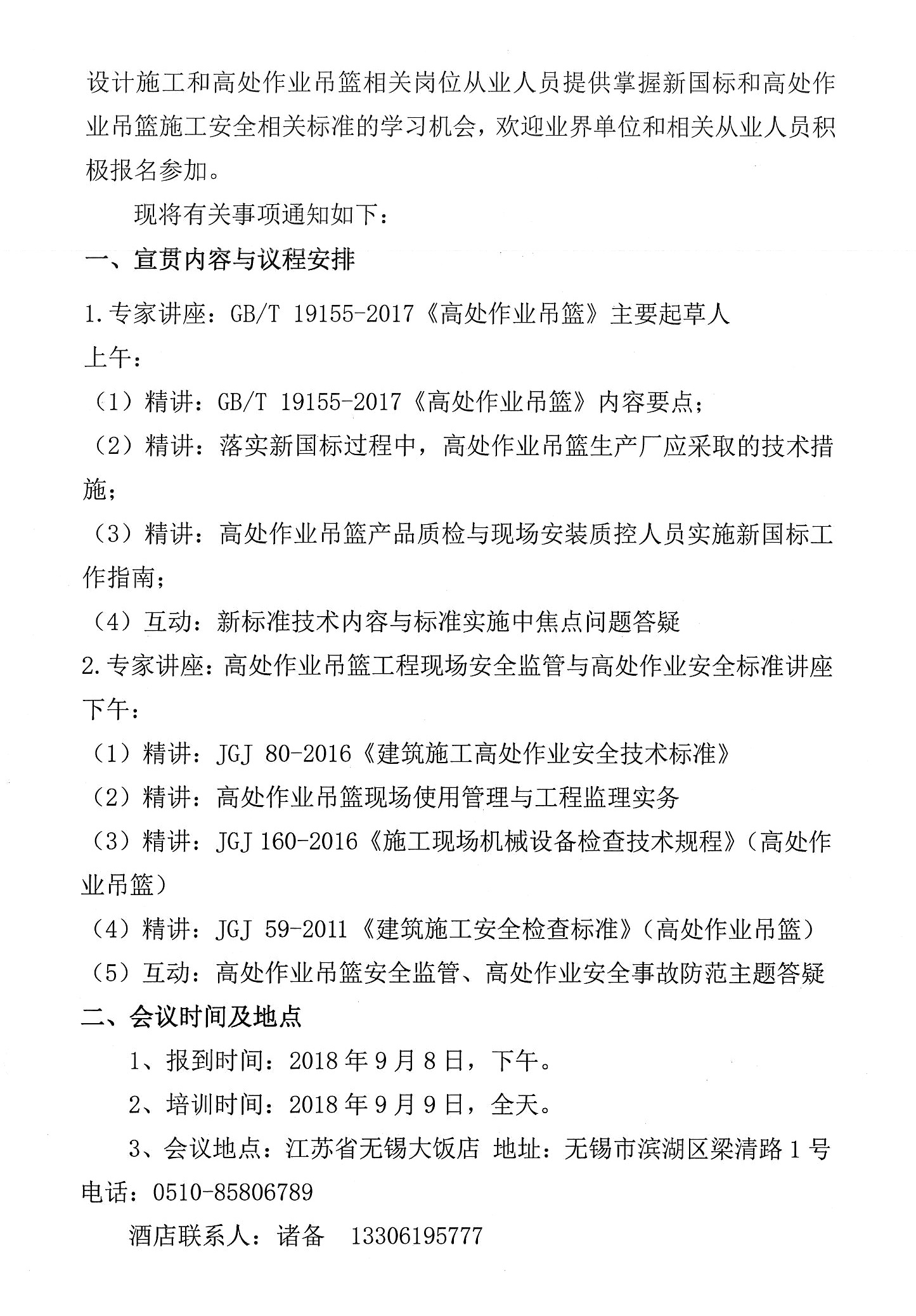 關于舉辦GB/T 19155-2017《高處作業吊籃》 標準宣貫學習與施工安全標準培訓會的通知